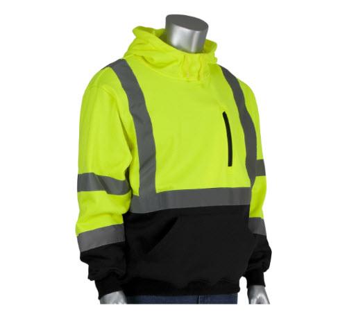 PIP ANSI Type R Class 3 Hooded Pullover Sweatshirt w/ Black Bottom / Hi-Vis Yellow - Large