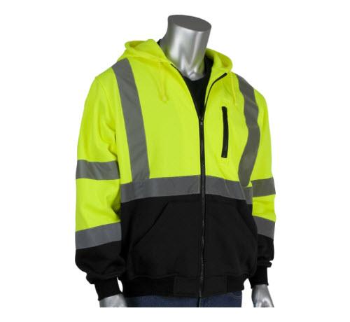 PIP ANSI Type R Class 3 Full Zip Hooded Sweatshirt / Hi-Vis Yellow w/ Black Bottom - XL