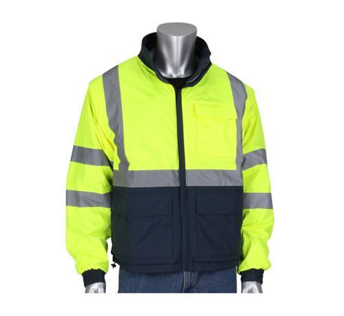 PIP ANSI Type R Class 3 4-in-1 Reversible Dark Gray Bottom Multi-Seasonal Windbreaker w/ Detachable Sleeves / Hi-Vis Yellow - 2 XL