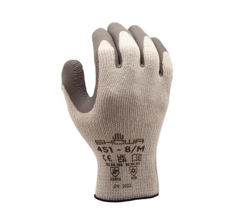 Created with warmth in mind, our 451 thermal-insulated gloves are designed to be worn in cold weather. Its seamless liner reduces irritation and an elastic wrist cuff keeps dirt and debris out of the glove. Thanks to the natural rubber palm coating, the 451 gloves are also abrasion resistant with increased grip from the rough surface texture. When wearing these gloves, the hand is also protected from aggressive detergents and alcohols.