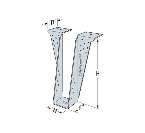 The HB is a top-flange hanger designed to carry medium to high loads for solid sawn and engineered wood applications. This heavy beam hanger features a full-height joist flange that captures the top chord of the joist to prevent rotation. With its one-piece design, the HB provides a cost-effective solution compared to welded hangers.