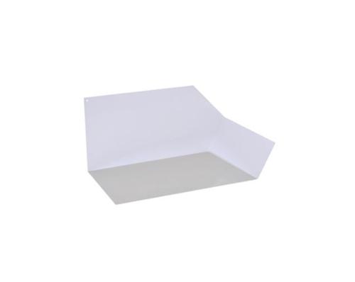 Heavy-duty, powder-coated aluminum kick out flashing diverter is made from 3003 alloy (0.040 thick), welded to create a strong, permanent, watertight joint that performs better than a field-formed kick out that is sealed with caulking. Will not deteriorate like plastic flashing or break down due to alkali hydroxides from concrete materials.
