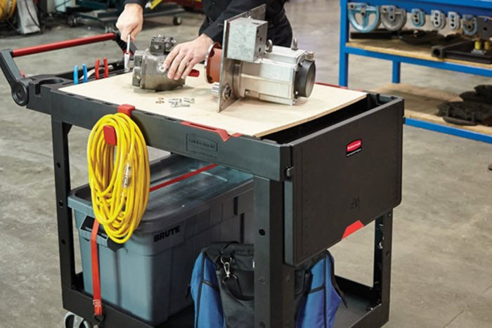 - Ladder Cart: Transport up to 500 lbs. of ladders and equipment safely and easily. Includes tool storage and locking cabinets.