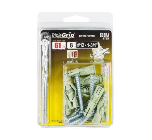 1 3/4 in x #12 Cobra Tripe-Grip Anchor w/ Screw & Drill Bit - Green